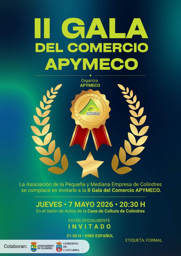 La GALA de los II Premios del Comercio de APYMECO se llevará a cabo el jueves 7 de mayo, a las 20:30 horas, en el salón de actos de la Casa de Cultura. Estamos emocionados de poder celebrar este evento en compañía de representantes del Ayuntamiento, de APYMECO y de toda nuestra comunidad comercial.